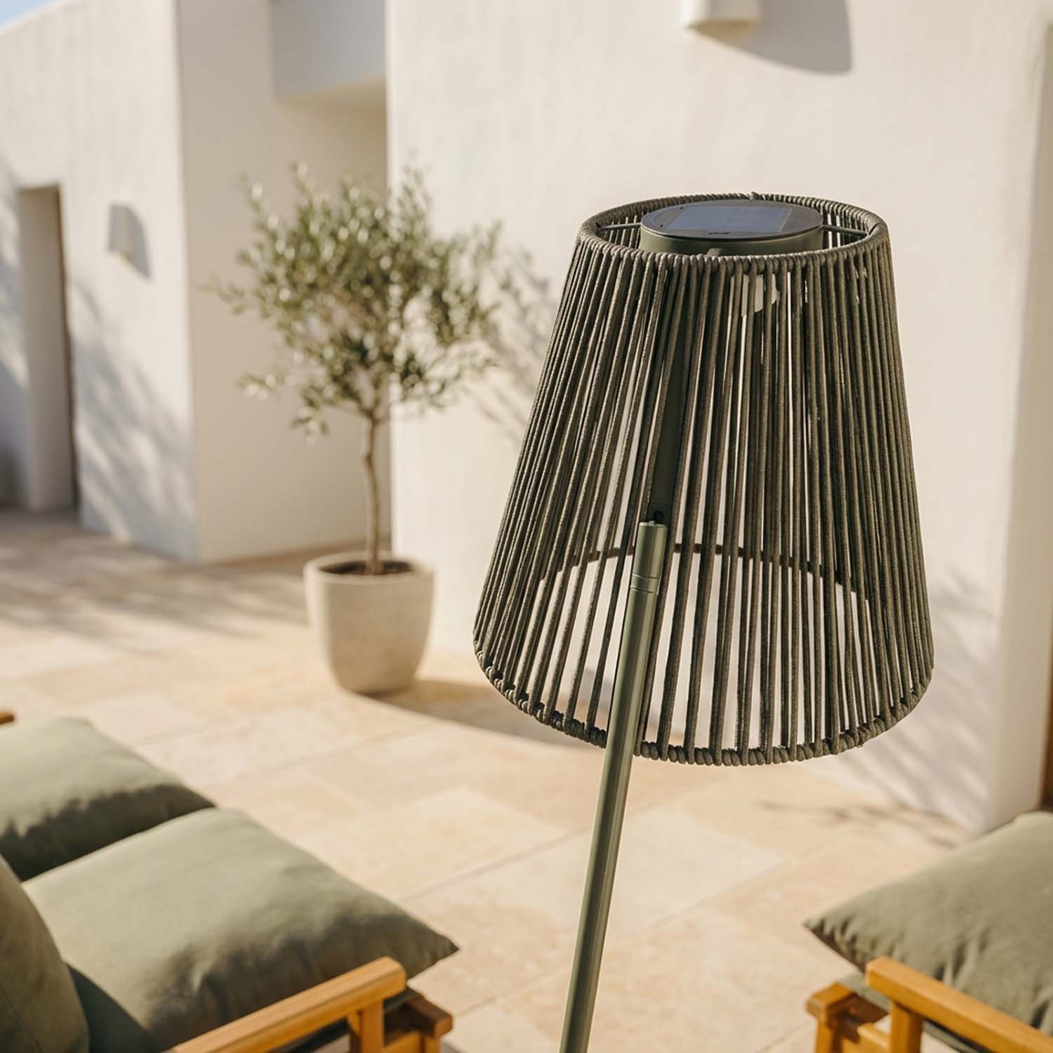 Ropelle to solarna lampa zewnętrzna o wysokości 160 cm, z plecioną liną z polipropylenu olefin – materiału szczególnie przeznaczonego do produktów outdoorowych, który wieczorem tworzy wyjątkową grę światła i cienia. Panel solarny ładuje ją w ciągu dnia, a czujnik zmierzchowy włącza ją o zachodzie słońca i wyłącza o świcie, automatycznie. Idealna do ogrodów, tarasów i każdej przestrzeni zewnętrznej, gdzie chcesz stworzyć klimat bez elektryka i bez rachunków.