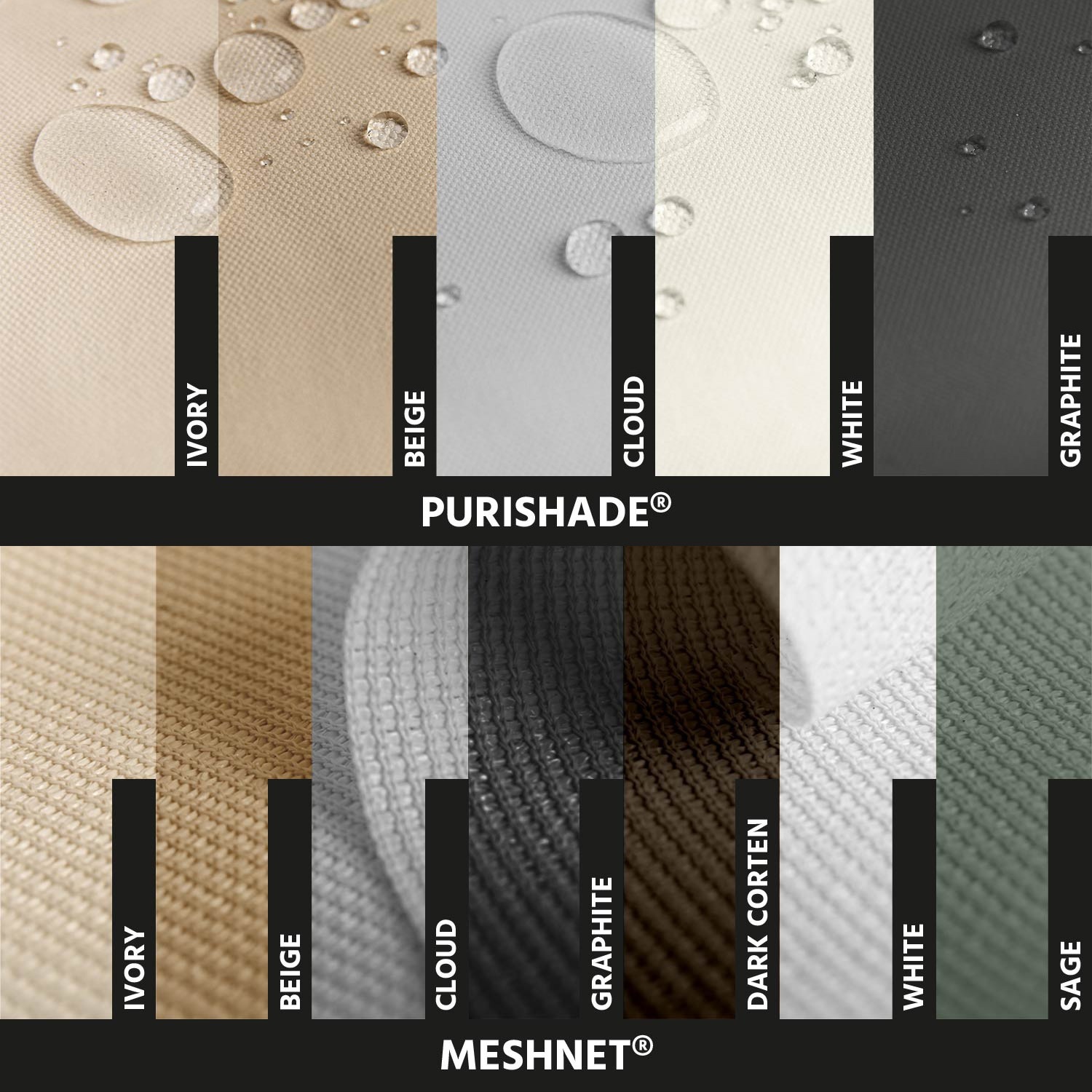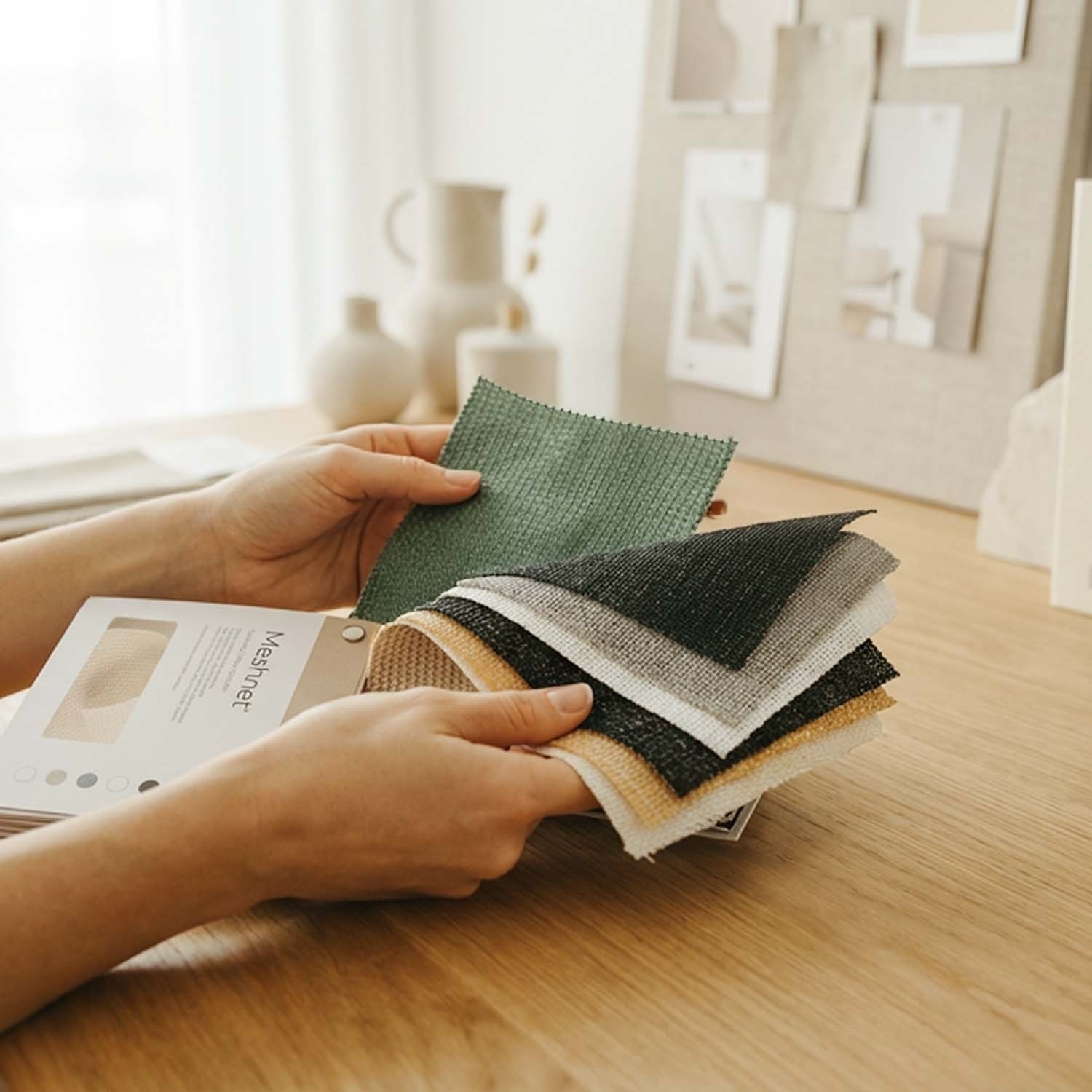 Sprawdź jakość naszych próbek tkanin na własne oczy: zobacz na żywo wszystkie dostępne kolory naszych prestiżowych wykończeń Purishade® i Meshnet®. Darmowa wysyłka jest zawsze w cenie.