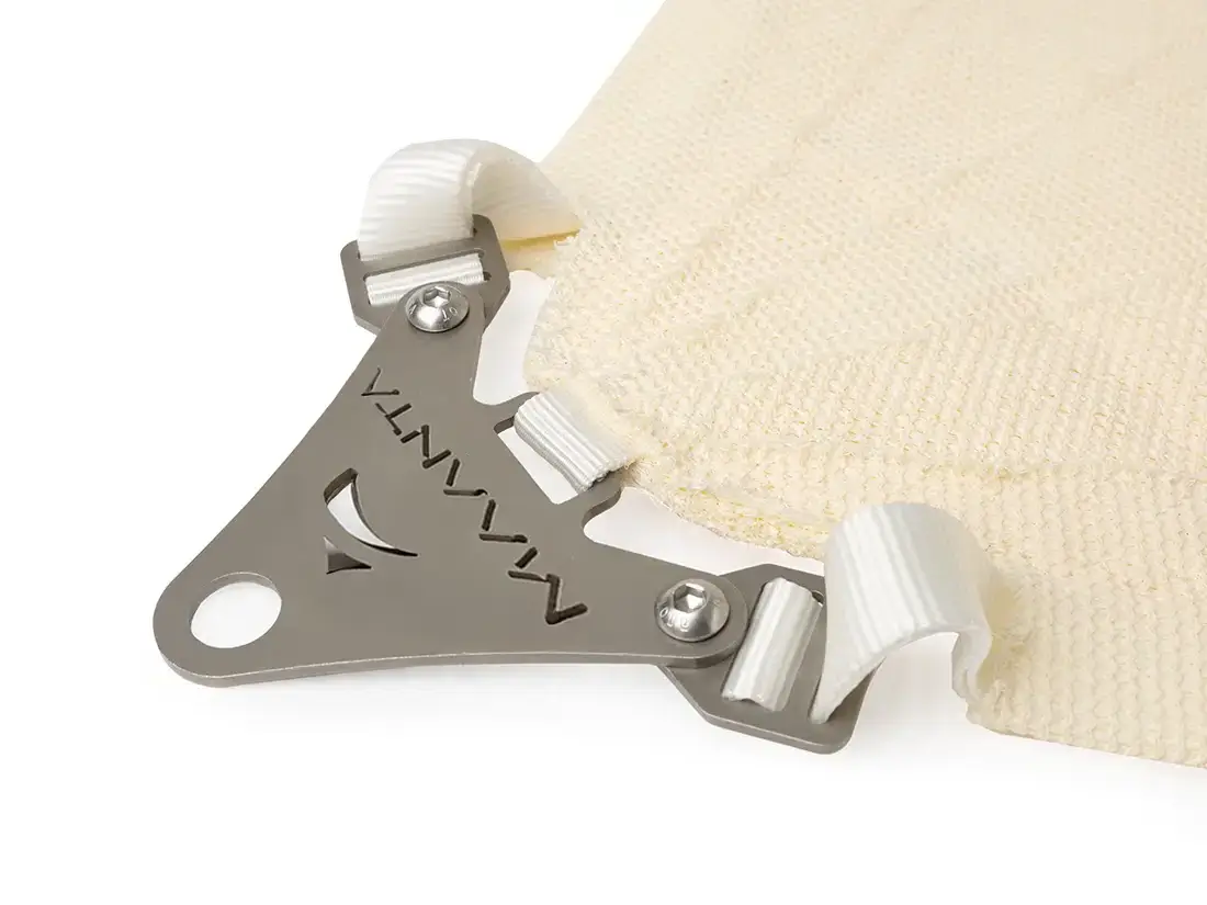 Oddychający materiał Solaria Furl, Żagiel w cieniu furkuje sam na sobie dzięki dołączonemu furlerowi Maanta.