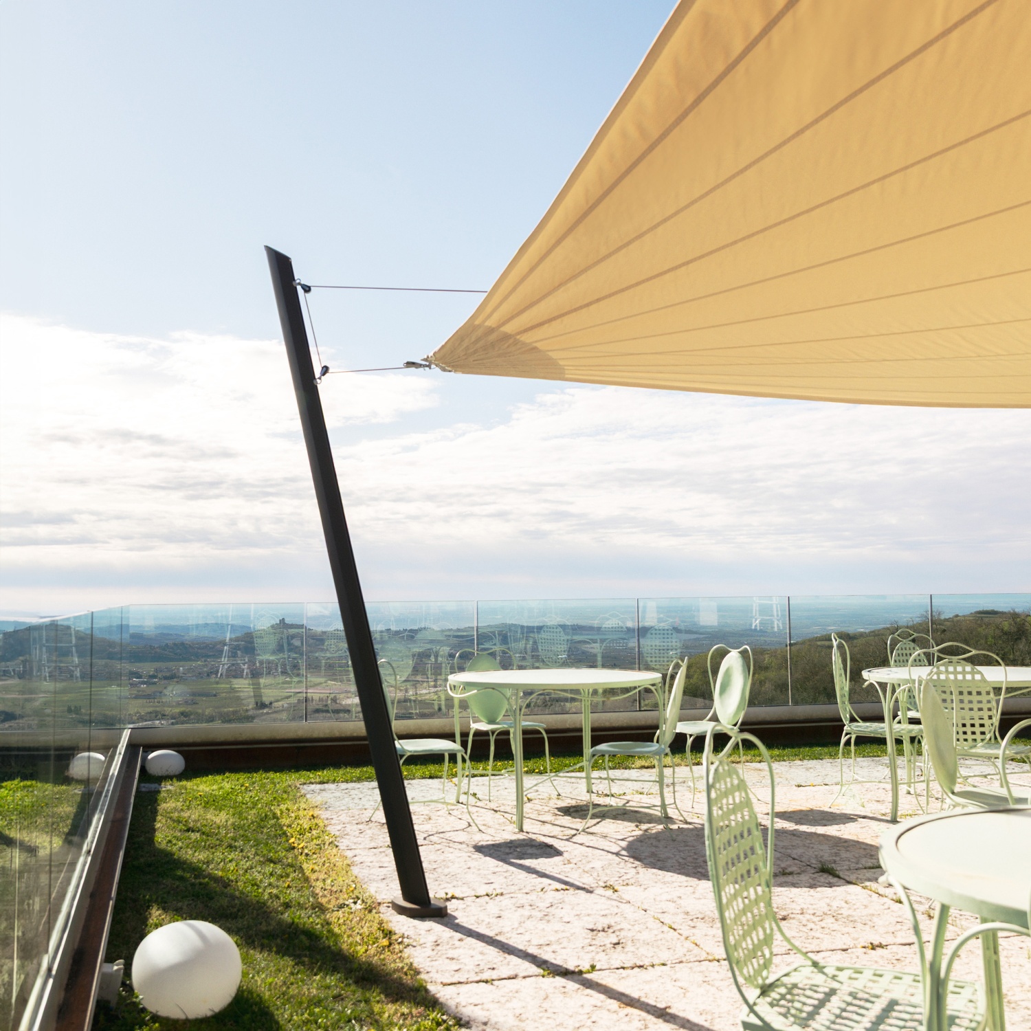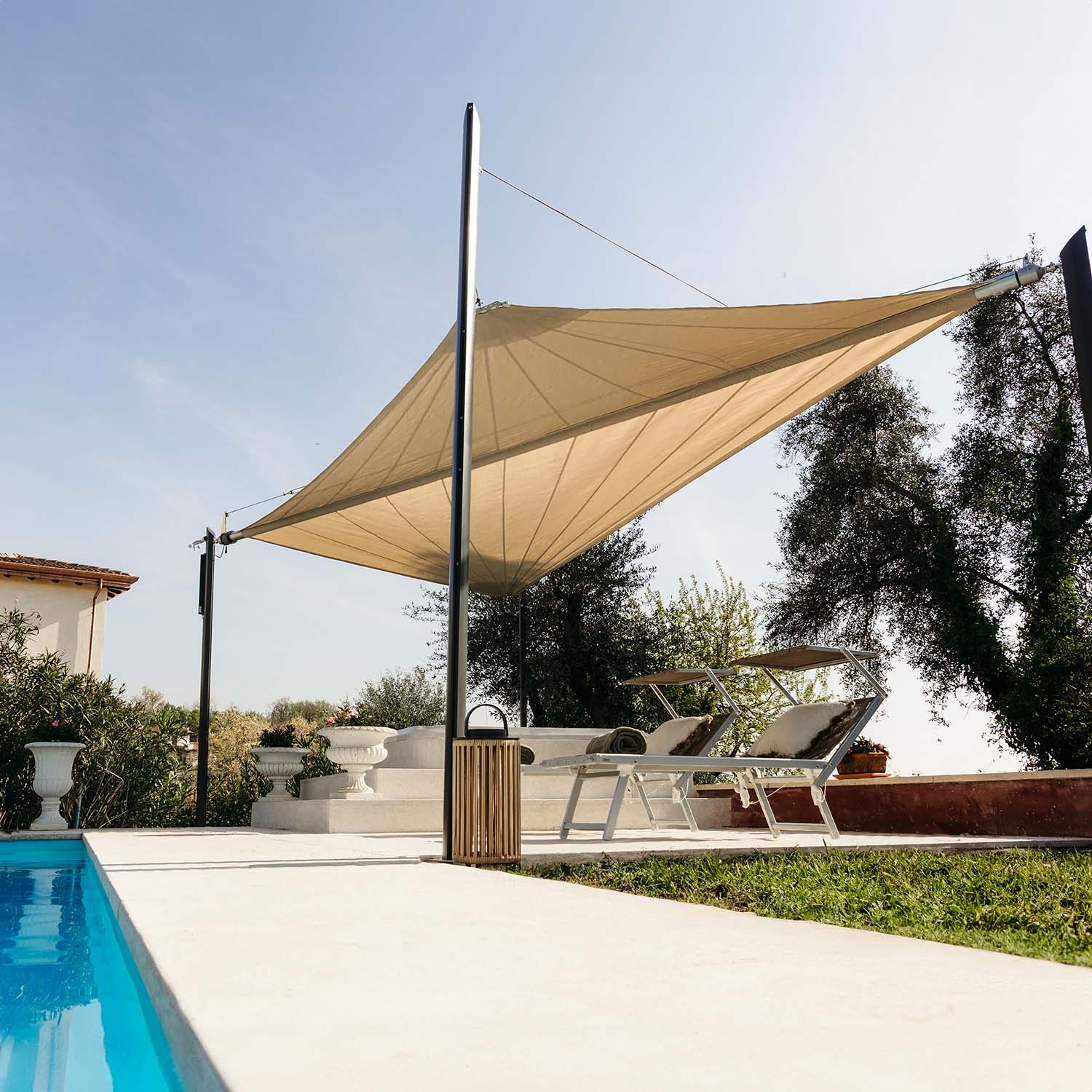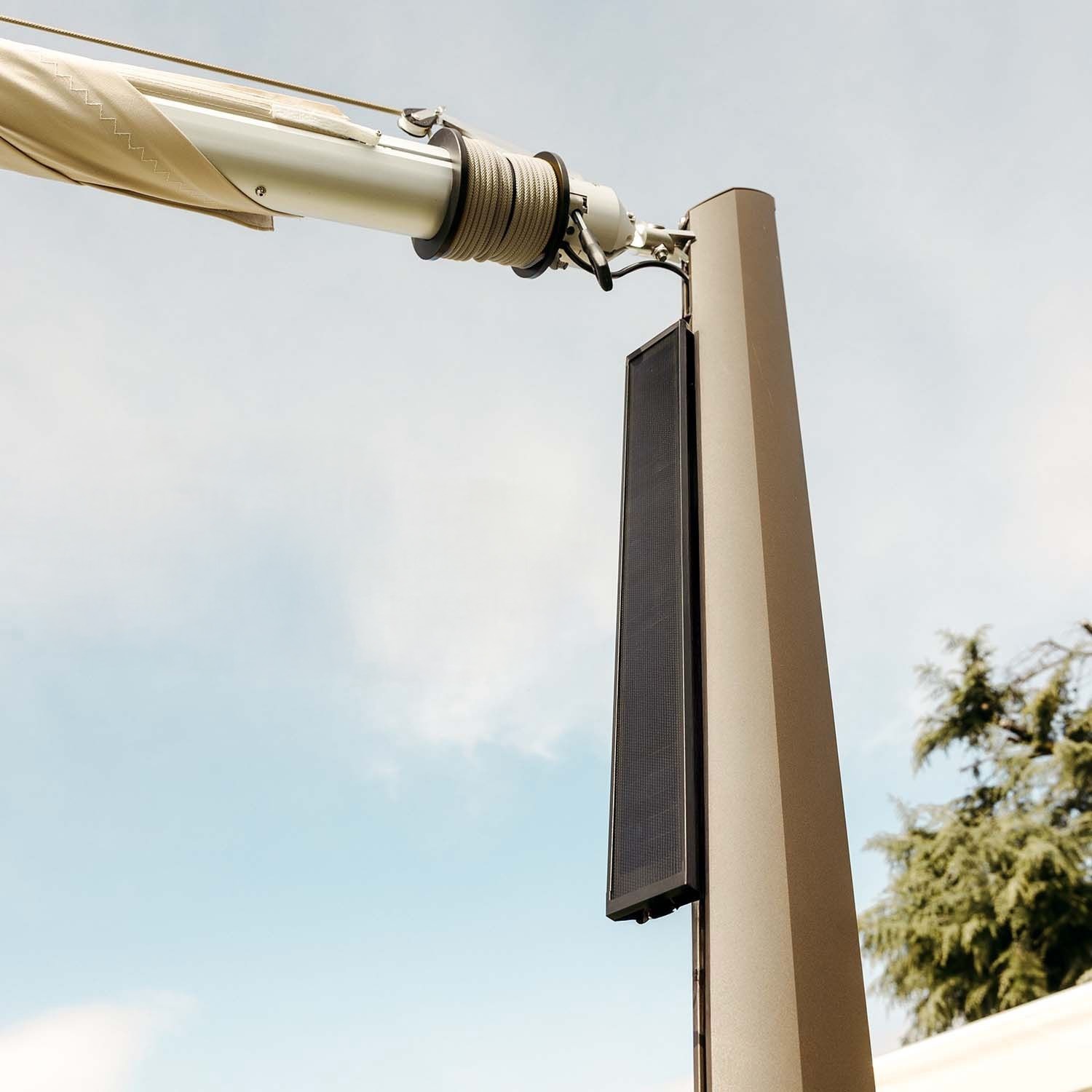 Ten żagiel przeciwsłoneczny elektryczny wymaga specjalnych słupów zaprojektowanych przez Maanta, wyposażonych w płyty pasujące do systemu mocowania z napędem. Jeśli masz inne słupy, niestety nie będą one kompatybilne z Zefira.